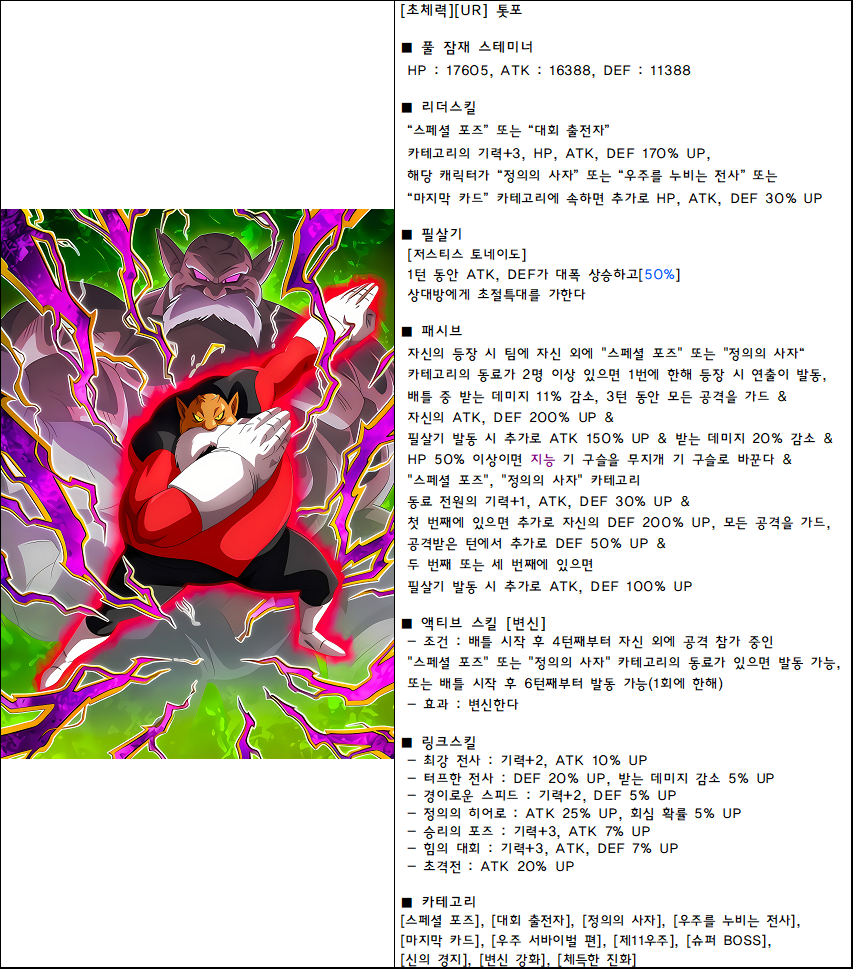 | [초체력][UR(Z)] 그레이트 사이어맨(SS2) (0) | 2024.04.07 |